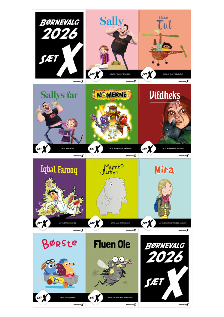 Og der er tale om et exceptionelt stærkt hold af kandidater, der kæmper om de unge vælgers gunst. Blandt dem finder man Sally og hendes pinlige far, kendt fra Thomas Brunstrøms og Thorbjørn Christoffersens populære billedbøger. Den biografaktuelle flodhest Mumbo Jumbo får på stemmesedlen selskab af Børste fra DR’s Minisjang og teenagepigen Mira, skabt af den danske børnebogsforfatter Sabine Lemire.